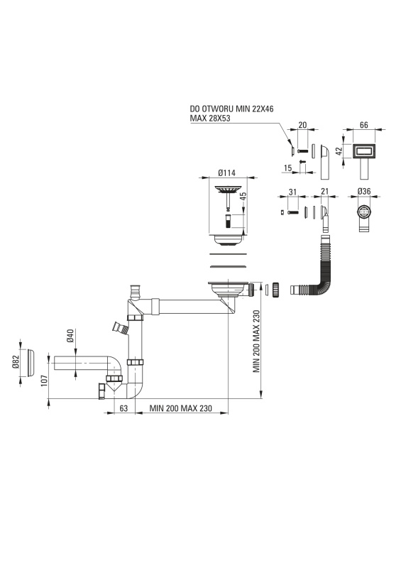 Deante SpaceSaver Syfon do zlewozmywaka 1-komorowego titanium ZXY_D949