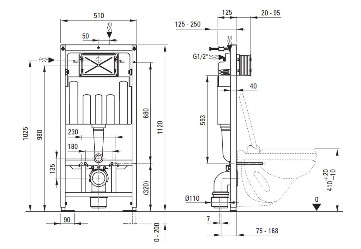 Deante Stelaż WC z odprowadzeniem zapachów/skroplin czarny mat CSTKWC01