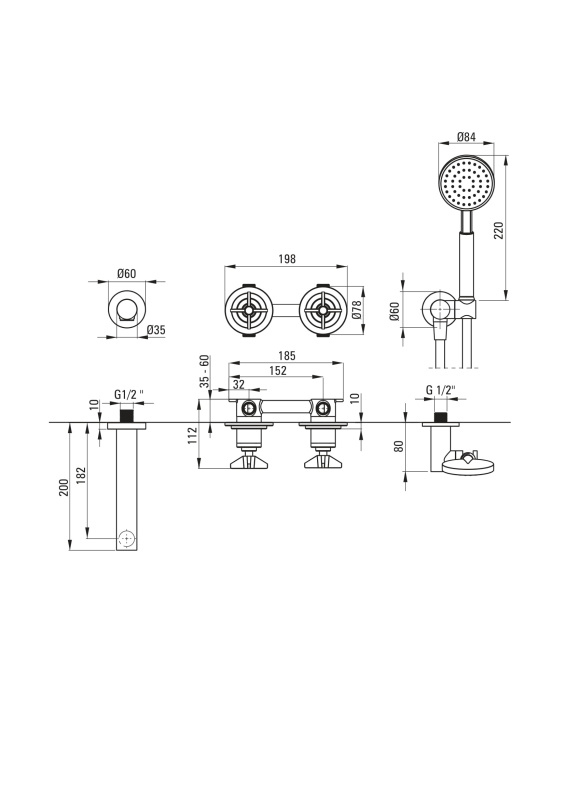 Deante Temisto Bateria wannowa podtynkowa mosiądz BQT_M18P