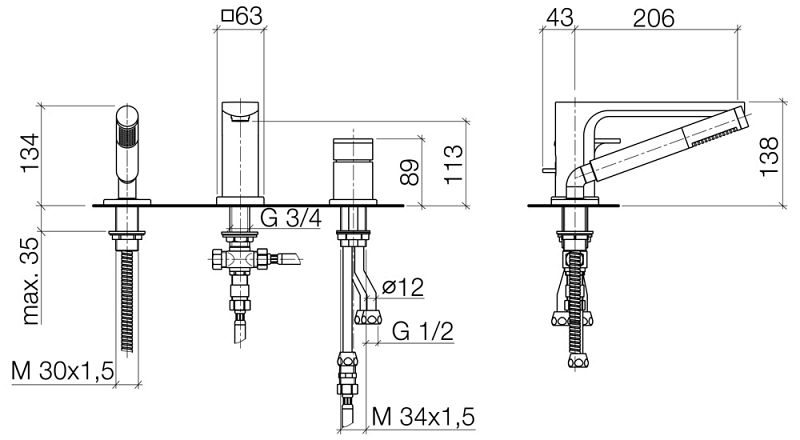 Opis produktu Dornbracht for Villeroy & Boch Cult Bateria wannowa 3-otworowa z mieszaczem chrom 27312960-00