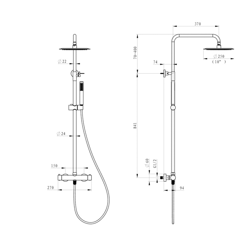 Emporia Fly Zestaw prysznicowy termostatyczny natynkowy z deszczownicą czarny mat EMPORIA-0401202BM