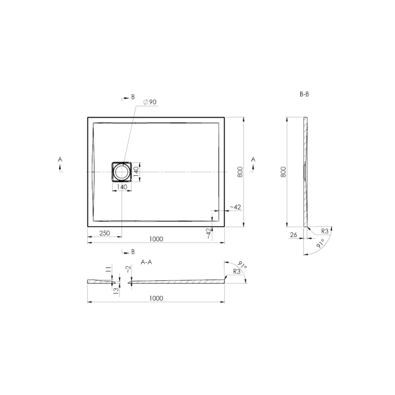 Emporia Lavis Brodzik prostokątny 100x80 cm czarny mat EMPORIA-1000-800-BLACK
