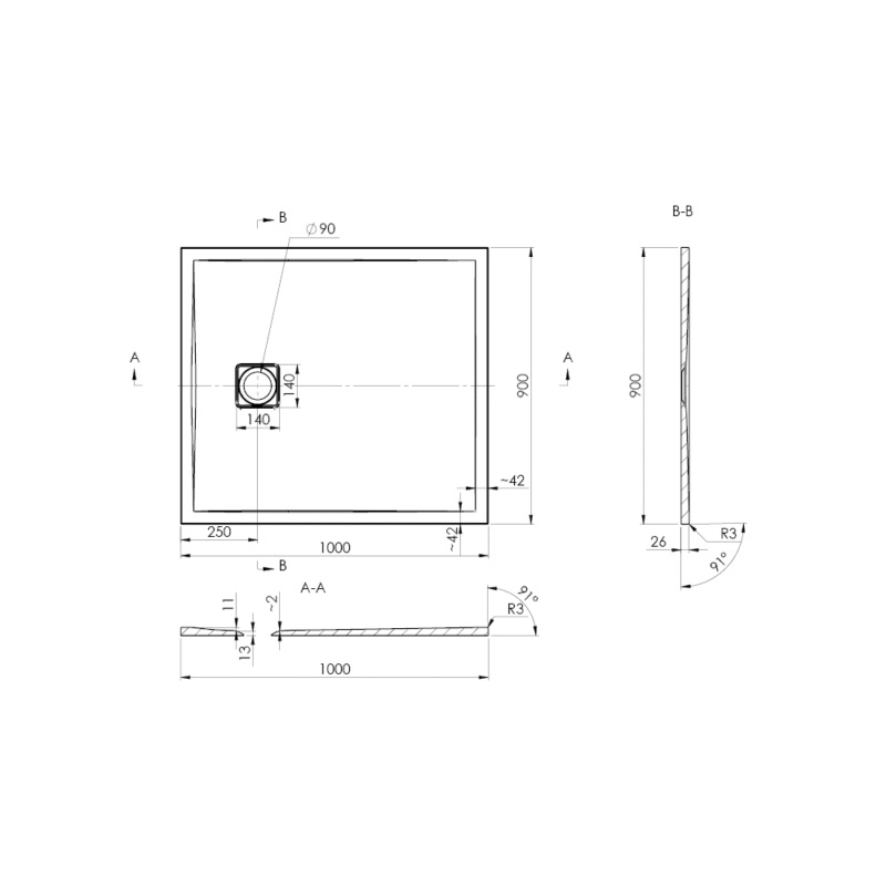 Emporia Lavis Brodzik prostokątny 100x90 cm czarny mat EMPORIA-1000-900-BLACK