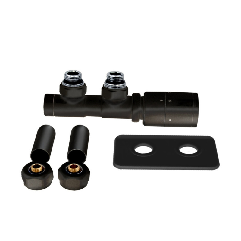 Emporia Max Zestaw termostatyczny ze złączką i maskownicą wersja lewa czarny EMPORIA-19646