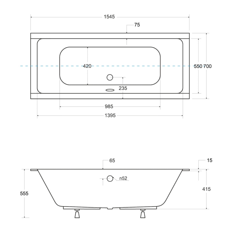 Emporia Prima Wanna prostokątna 155x70 cm biały EMPORIA-BS-WAQ155