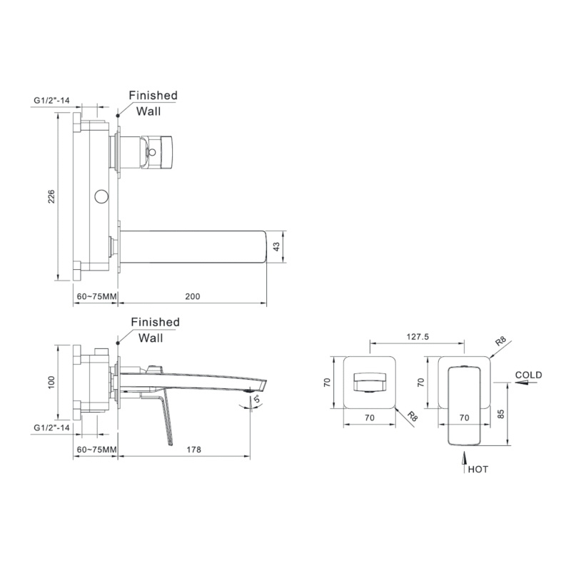 Emporia Teo Bateria umywalkowa podtynkowa gun metal EMPORIA-02012BN