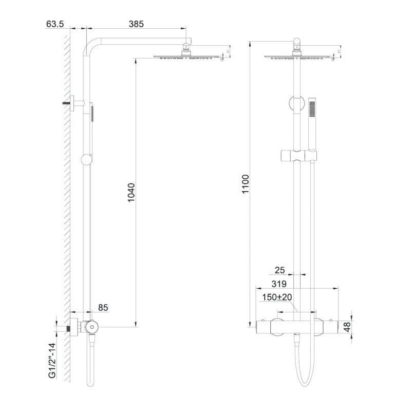 Emporia Zestaw prysznicowy termostatyczny natynkowy z deszczownicą nikiel szczotkowany EMPORIA-0401201N