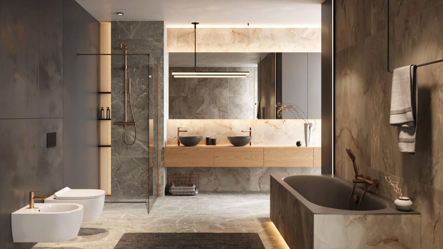 Excellent Pi Zestaw prysznicowy natynkowy z deszczownicą PVD miedź szczotkowana AREX.1281CB