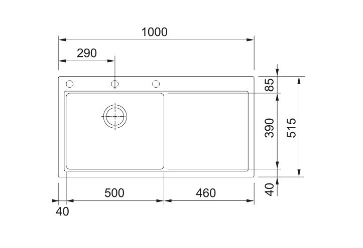- Zlewozmywak wpuszczany w blat z dużą komorą pomieści nawet większe garnki i naczynia, a szeroki ociekacz zapewni wygodne suszenie