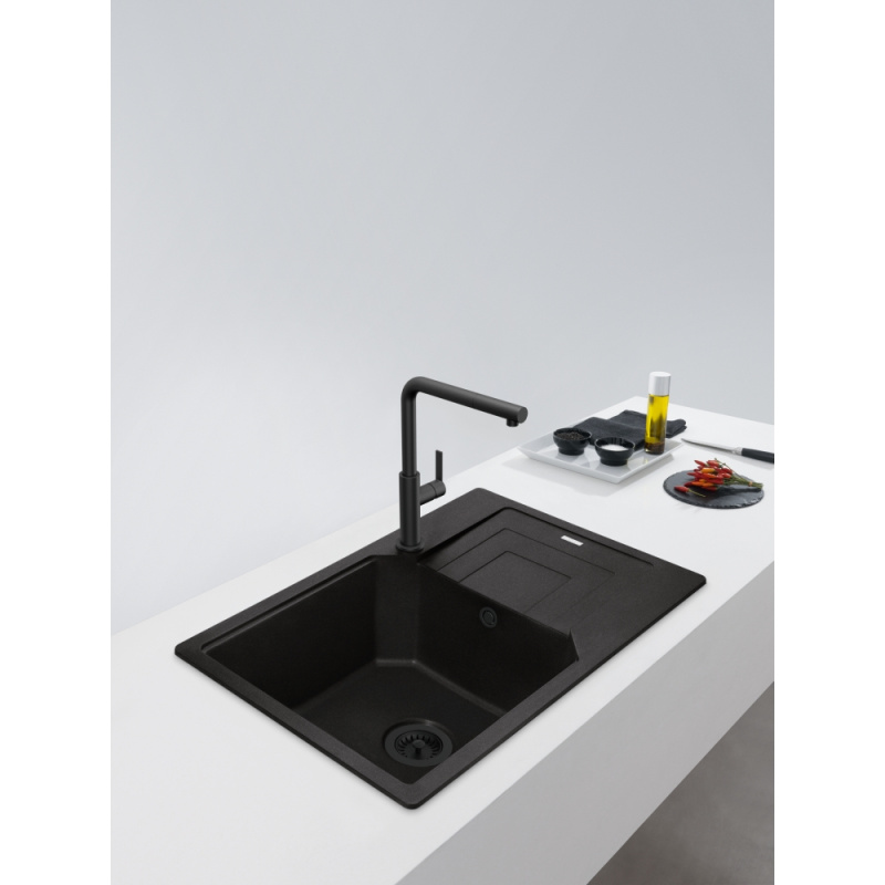 - Zlewozmywak wpuszczany w blat został wyposażony w odpływ w czarnym macie tworząc harmonijną całość, która sprawi, że Twoja kuchnia nabierze głębi i oryginalnego sznytu