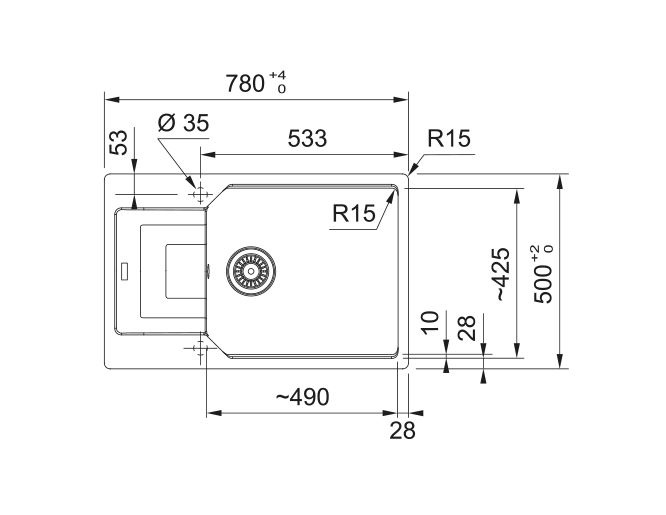- Zlew granitowy Franke jest odporny na zarysowania, uderzenia i zaplamienia oraz krótkotrwałe działanie wysokiej temperatury (do 15 sek. do 280°C)