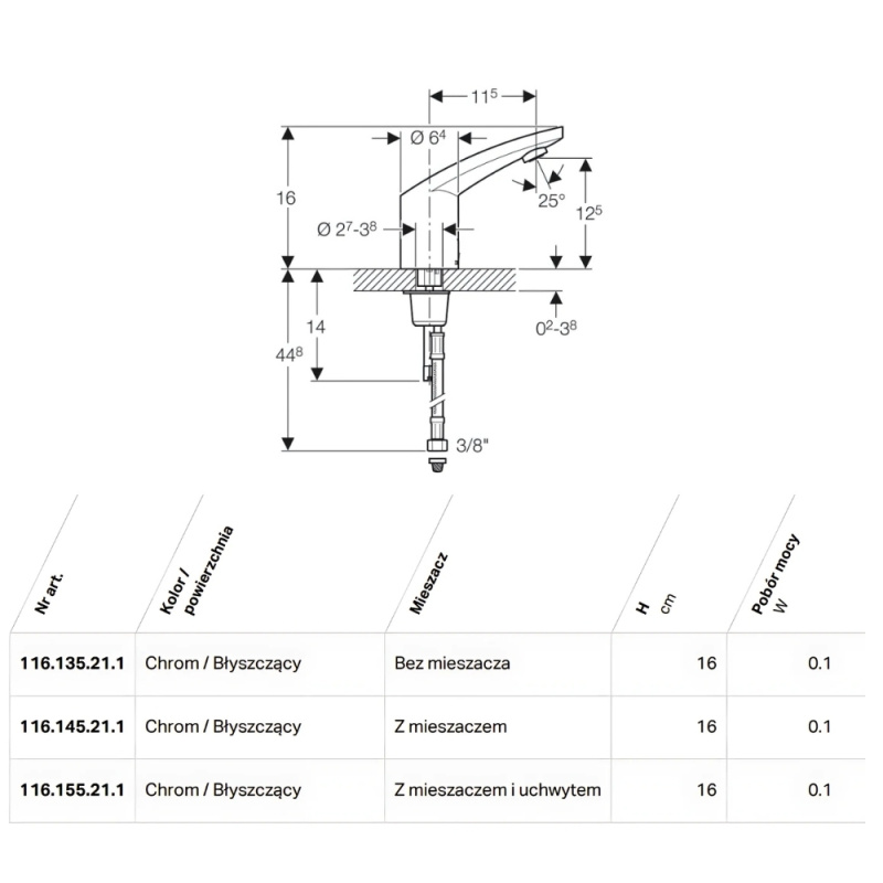 Geberit Typ 185 Bateria umywalkowa bezdotykowa z mieszaczem wewnętrznym 11,5 cm chrom połysk 116.145.21.1