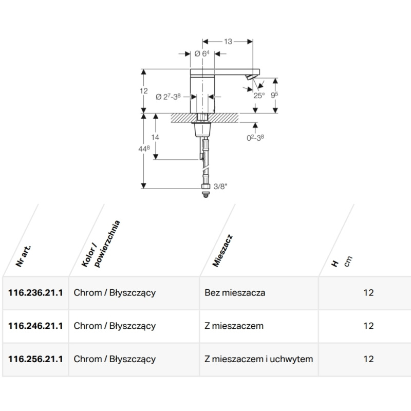 Geberit Typ 186 Bateria umywalkowa bezdotykowa bez mieszacza zasilanie bateryjne 13 cm chrom połysk 116.236.21.1