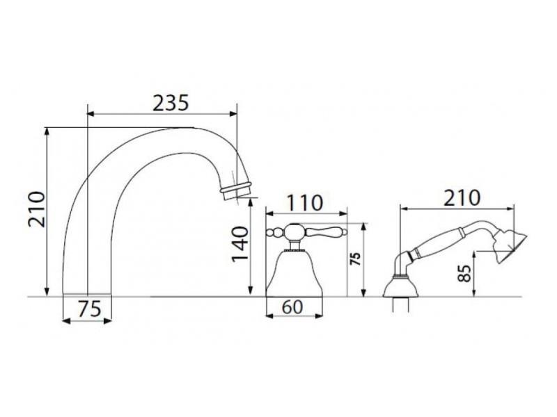 Giulini Giovanni Praga Bateria wannowa 5-otworowa chrom/złoto 7560CZ