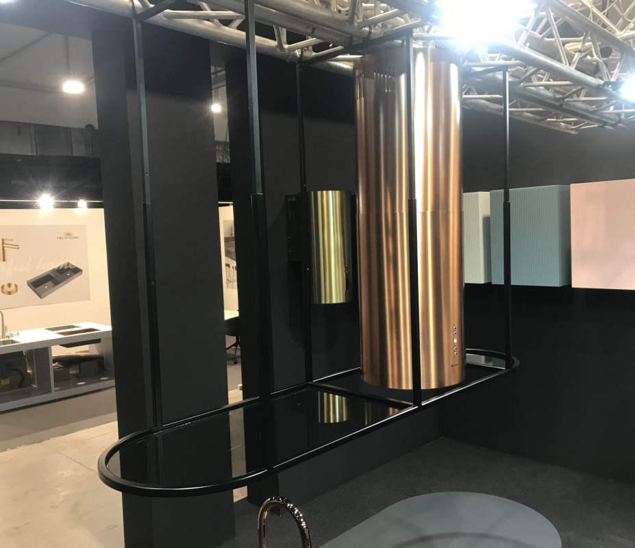 Globalo Design Cylindro Isola Zestaw Okap wyspowy 50x39 cm kolor do wyboru + półka Afralo czarna ZESTAW_CYLINDRO_AFRALO
