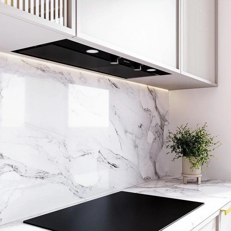 - Kompaktowy korpus o wysokości tylko 11,2 cm. pozwala na łatwe ukrycie okapu w kuchennej zabudowie i oszczędność miejsca