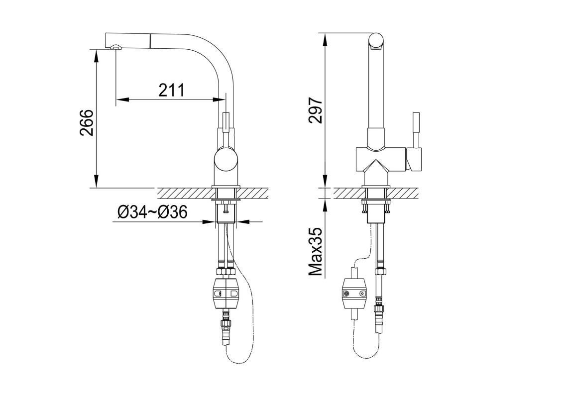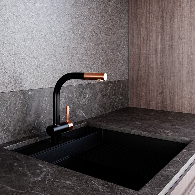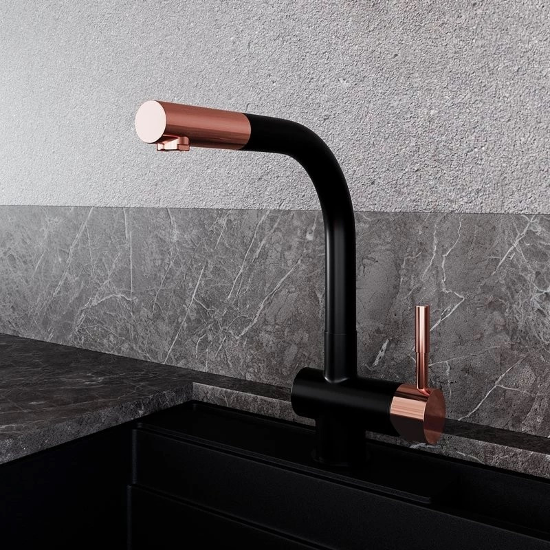 Globalo Design Lobio Black/Copper Ring 1.1 Bateria kuchenna z wyciąganą wylewką czarna/miedź z powłoką PVD LOBIO_C_RING_BLACK