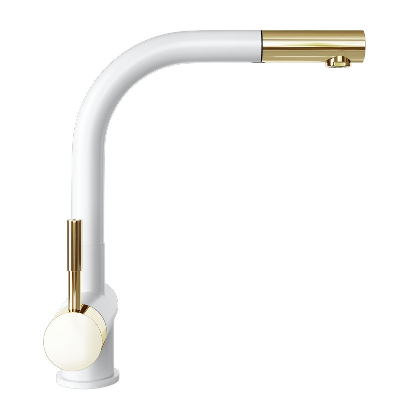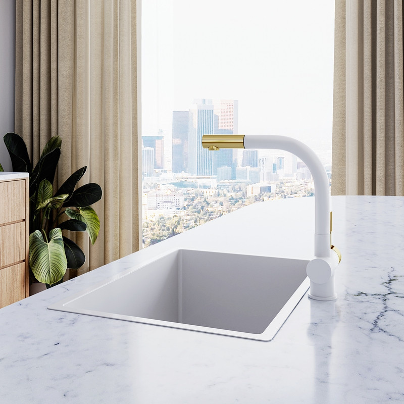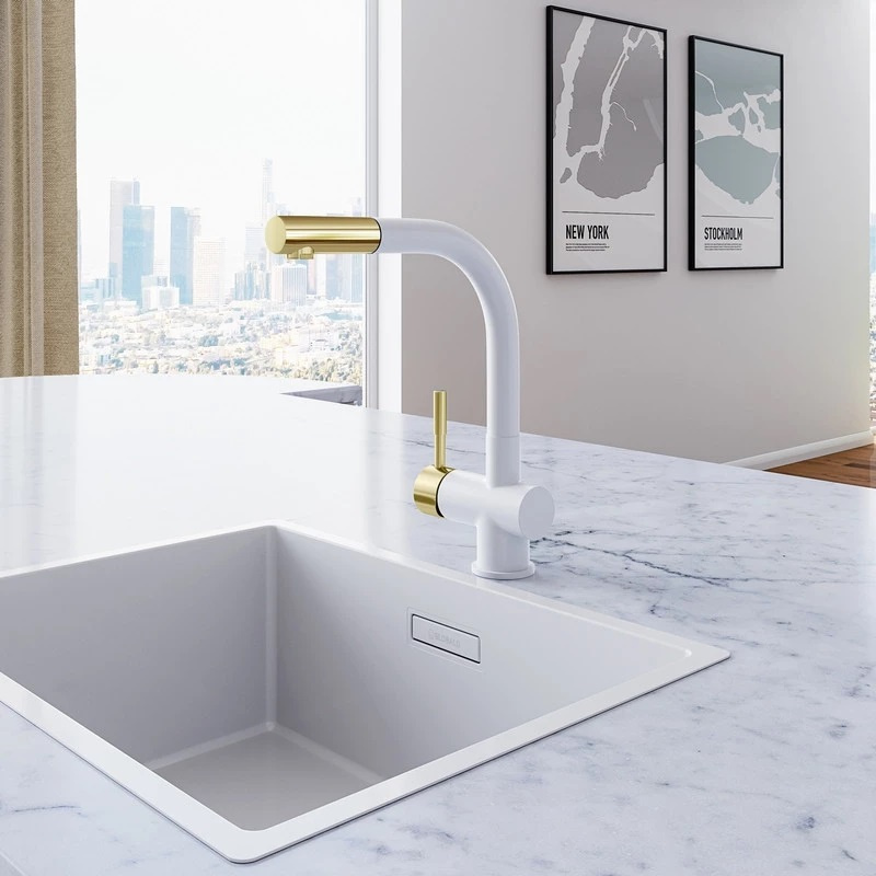 Globalo Design Lobio White/Light Gold Ring 1.1 Bateria kuchenna z wyciąganą wylewką biała/jasny złoty z powłoką PVD LOBIO_LG_RING_WHITE