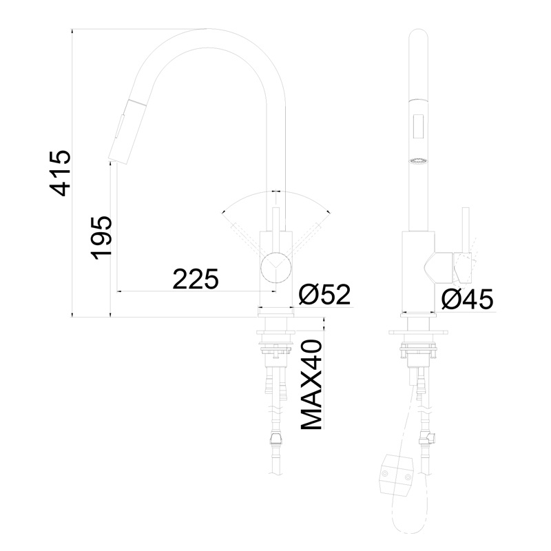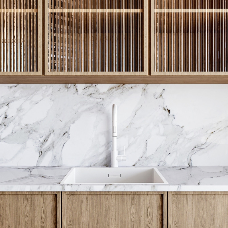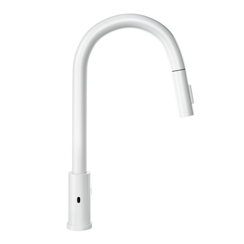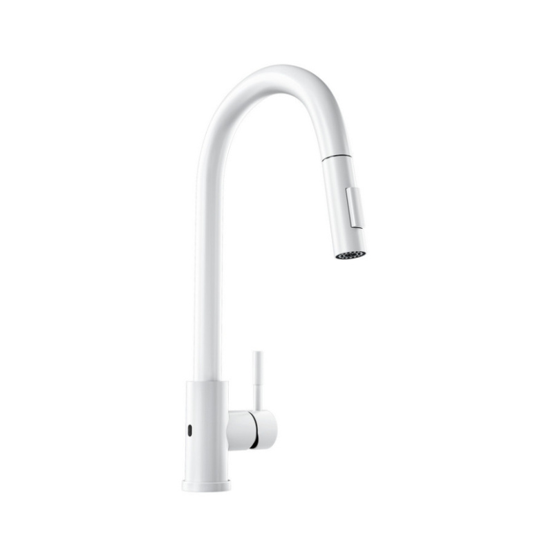 Globalo Design Loretio White 1.1 Bateria kuchenna bezdotykowa z wyciąganą wylewką biała LORETIO_WHITE