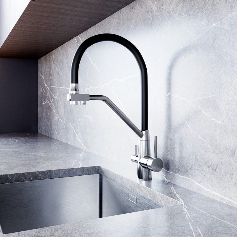 Globalo Design Olintio Black/inox 1.1 Bateria kuchenna z filtrem czarna/inox OLINTIO_BLACK_INOX