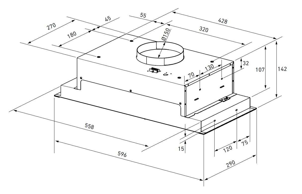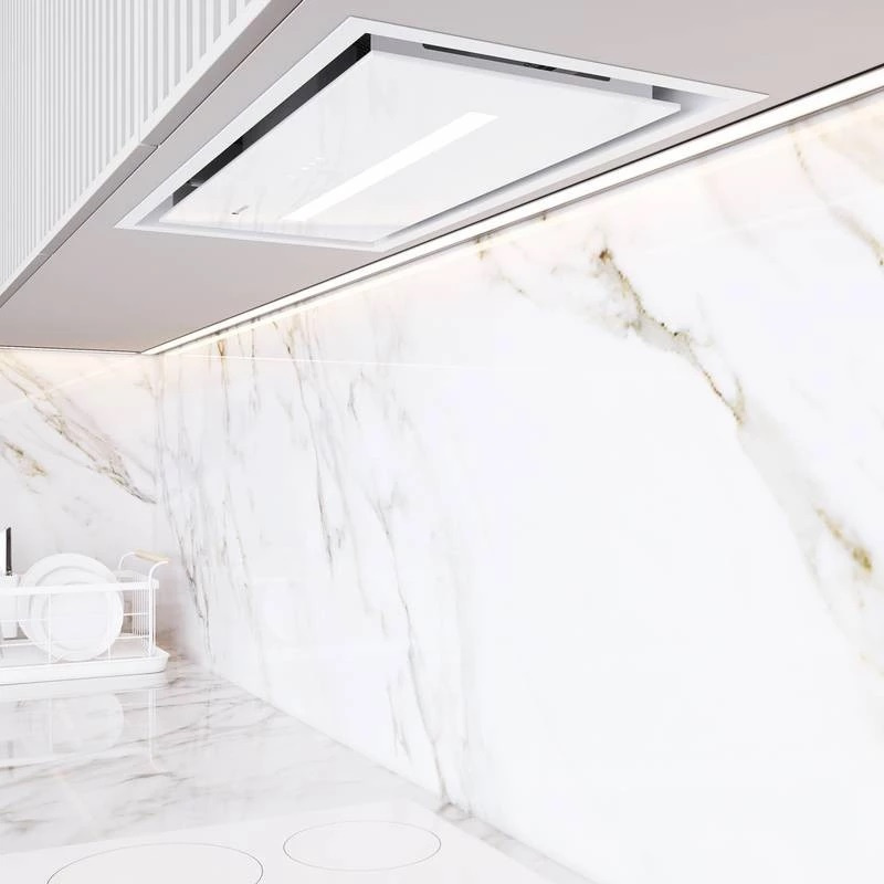 - Kompaktowy korpus o wysokości tylko 14,2 cm. pozwala na łatwe ukrycie okapu w kuchennej zabudowie i oszczędność miejsca