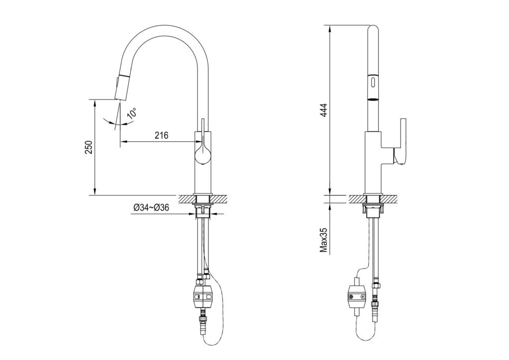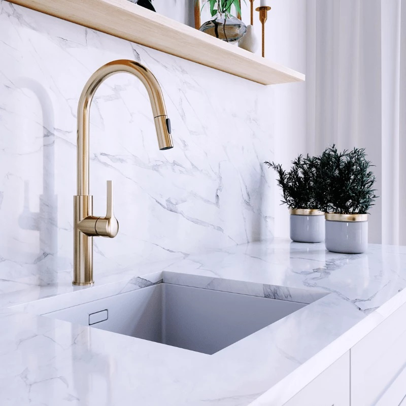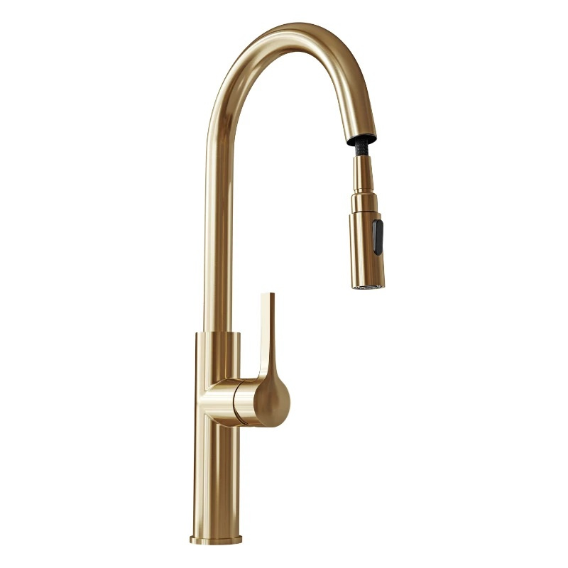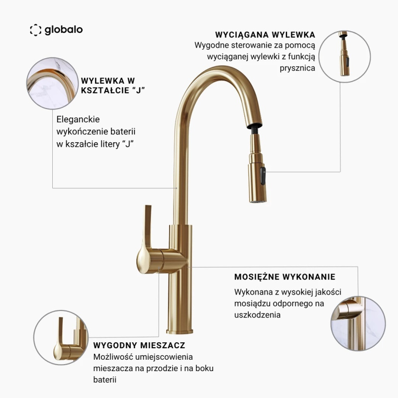 Globalo Exclusive Divio Light Gold Mat 1.1 Bateria kuchenna z wyciąganą wylewką jasny złoty mat z powłoką PVD DIVIO_LIGHT_GOLD_MAT