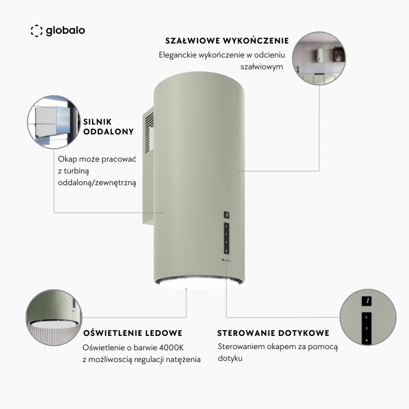 Opis produktu Globalo Harmony Miraya 39.1 Okap przyścienny 47,5 cm sage MIRAYA_39_1_SAGE