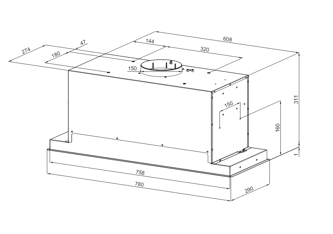 Opis produktu Globalo Silent Quality Pinelio 80.1 Okap do zabudowy 80x29 cm czarny PINELIO_80_1_BLACK