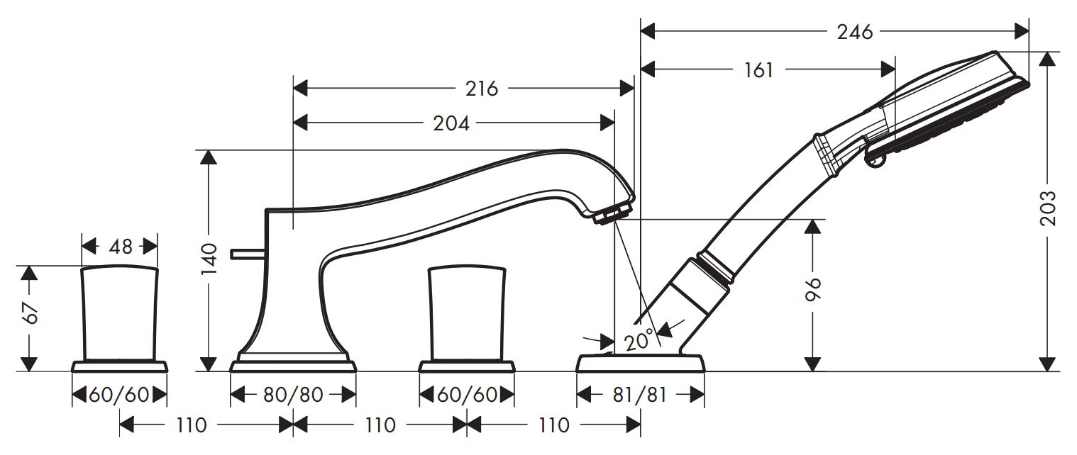 Opis produktu Hansgrohe Metropol Classic Bateria nawannowa 4 otworowa chrom 31315000