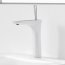 - Subtelna bryła korpusu zakończona płaską, prostokątną wylewką o zasięgu 13,2 cm oraz charakterystycznym uchwytem typu Pin stanowi o designerskim sznycie modelu i klasyfikuje go pośród rozwiązań o organicznym oraz nowoczesnym wyglądzie.