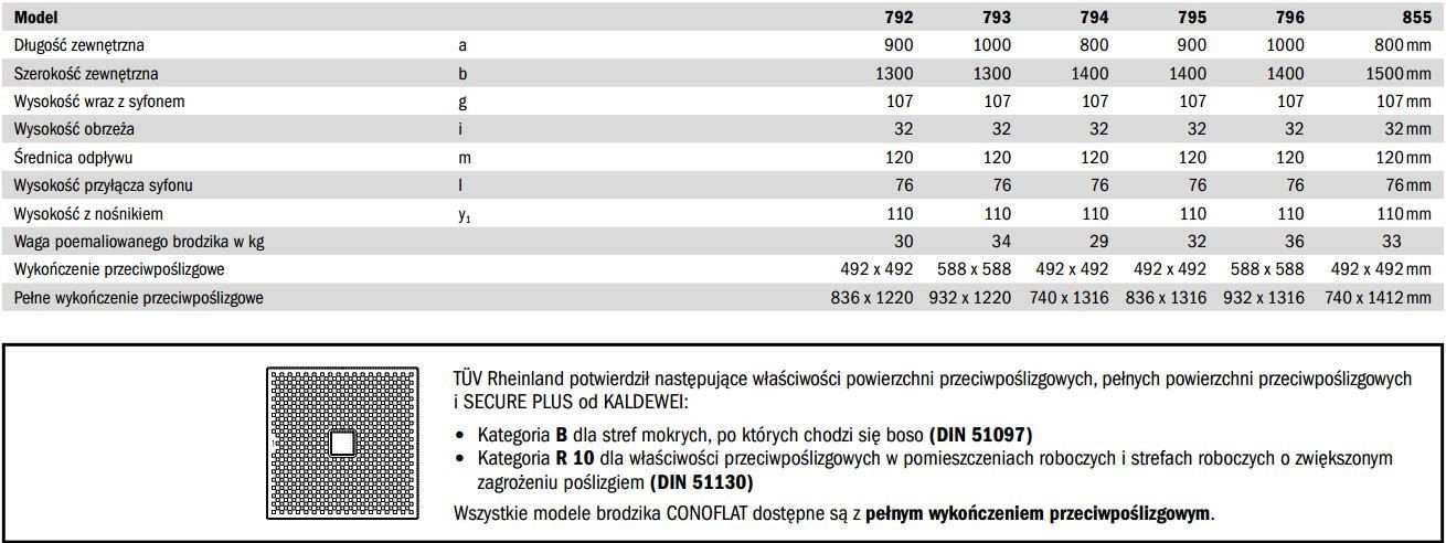 Brodzik prostokątny Kaldewei Conoflat – wymiary