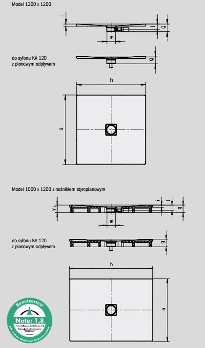 - Niezbędny syfon KA 120 do brodzika CONOFLAT i rama montażowa FR Plus lub ESR II