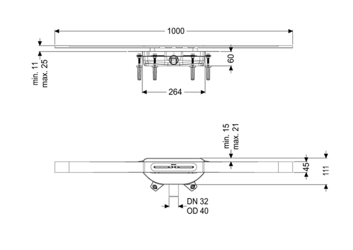 - Rynna zawiera kołnierz zatrzaskowy z fabrycznie zamontowaną matą hydroizolacyjną zgodnie z normami DIN EN 1253-1 i DIN 18534-1-W3-I