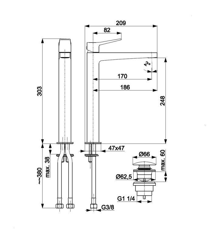 - Opakowanie zawiera: Spust klik-klak, komplet mocujący z uszczelkami, przyłącza elastyczne M10x1/G3/8" (L=450mm, 2 szt.)