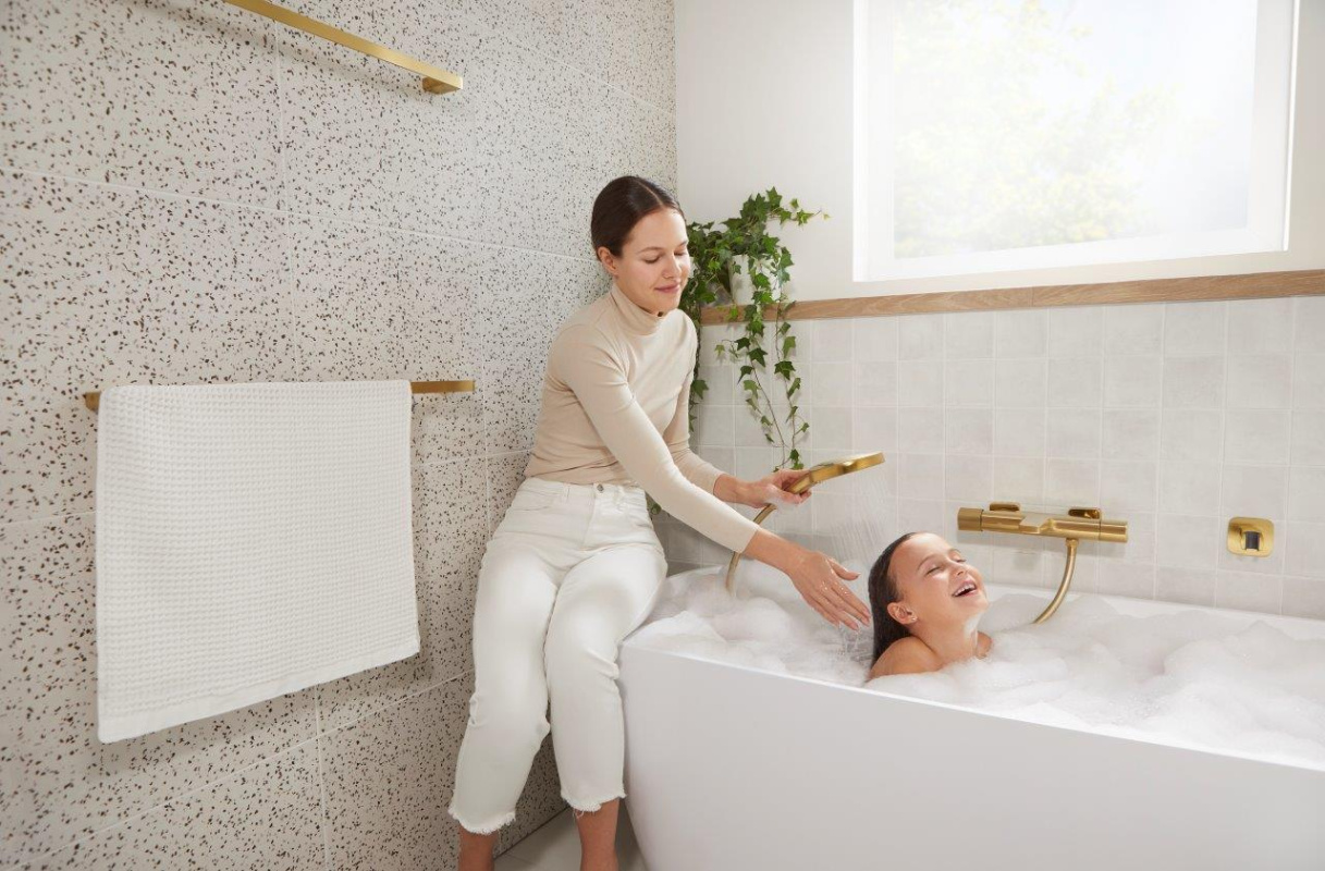 KFA Malaga Bateria wannowa termostatyczna natynkowa złoty szczotkowany z powłoką PVD 5754-010-31