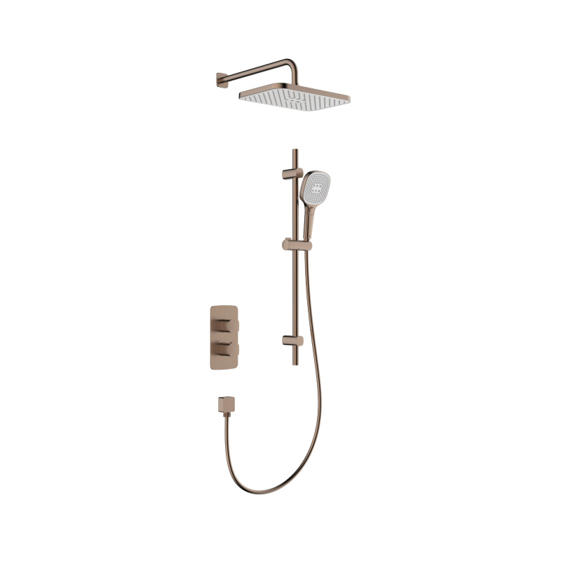 KFA Malaga Zestaw prysznicowy termostatyczny podtynkowy z deszczownicą brushed rose gold z powłoką PVD 5759-301-34