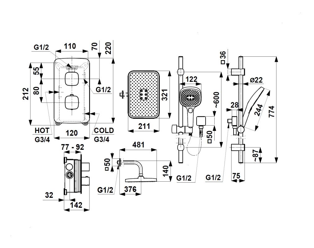 KFA Malaga Zestaw prysznicowy termostatyczny podtynkowy z deszczownicą gun metal grey z powłoką PVD 5759-301-61