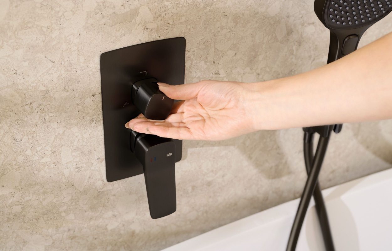 Opis produktu KFA Malaga Zestaw prysznicowy podtynkowy z deszczownicą czarny 4529-301-81