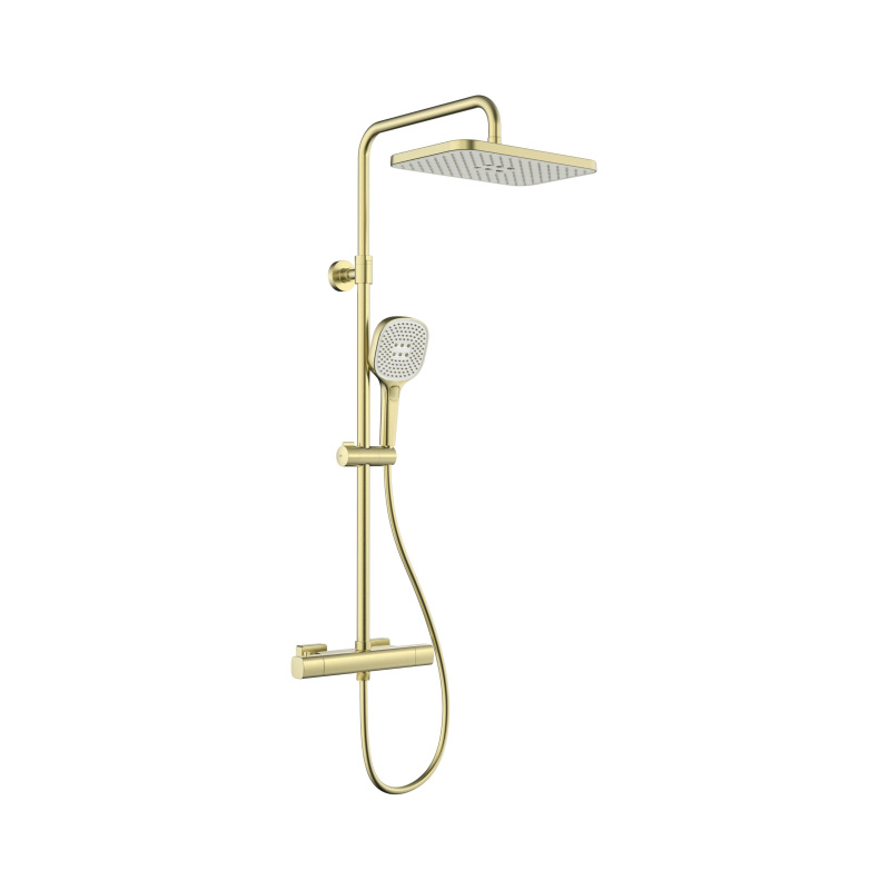 KFA Malaga Zestaw prysznicowy termostatyczny natynkowy z deszczownicą złoty szczotkowany z powłoką PVD 5756-910-31