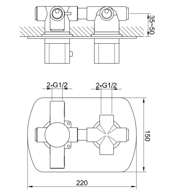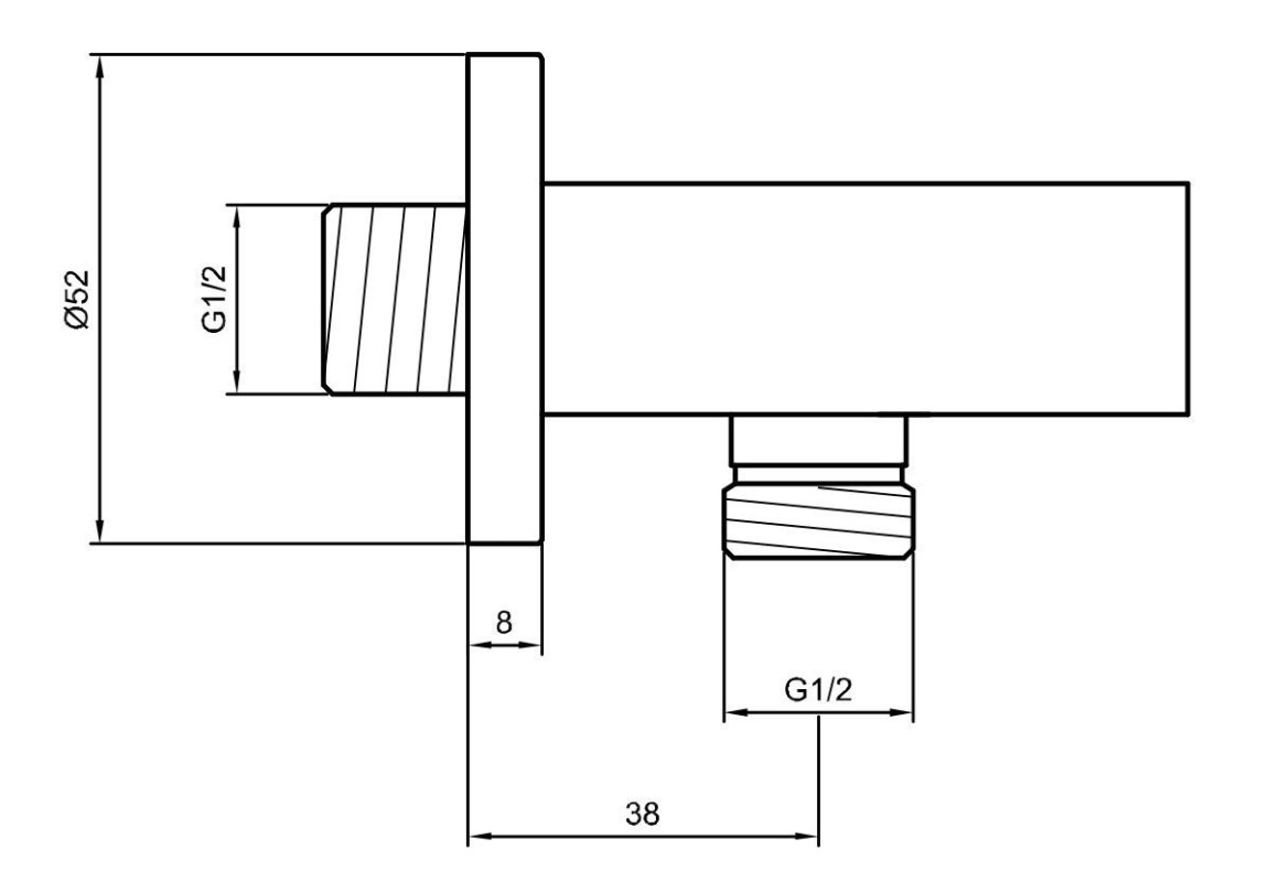 - Przyłącze wody ramienia i uchwytu: 1/2"