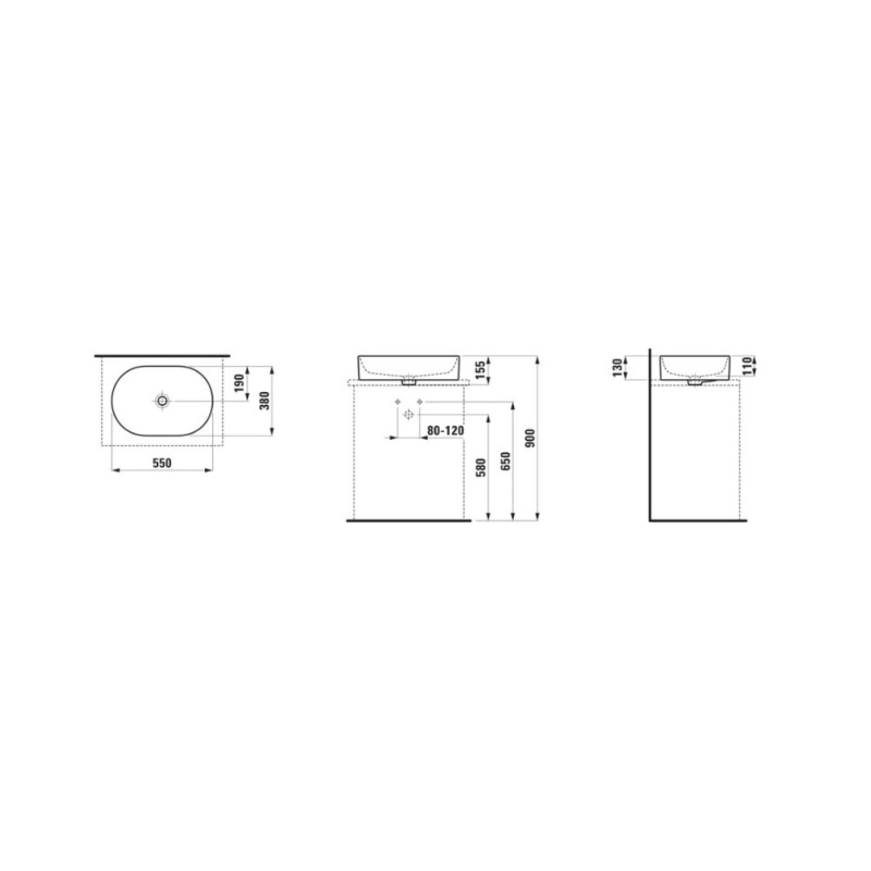 Dodaj ocenę i opinię o Laufen Savoy Umywalka nablatowa 55x38 cm bez przelewu czarny mat H8129447161121