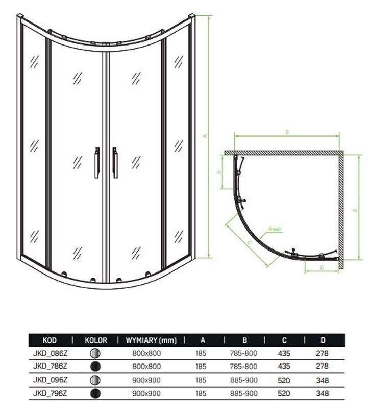 Laveo Desna Kabina prysznicowa półokrągła 80x80x201 cm drzwi rozsuwane + brodzik półokrągły 80x80 cm biały JKDD086Z