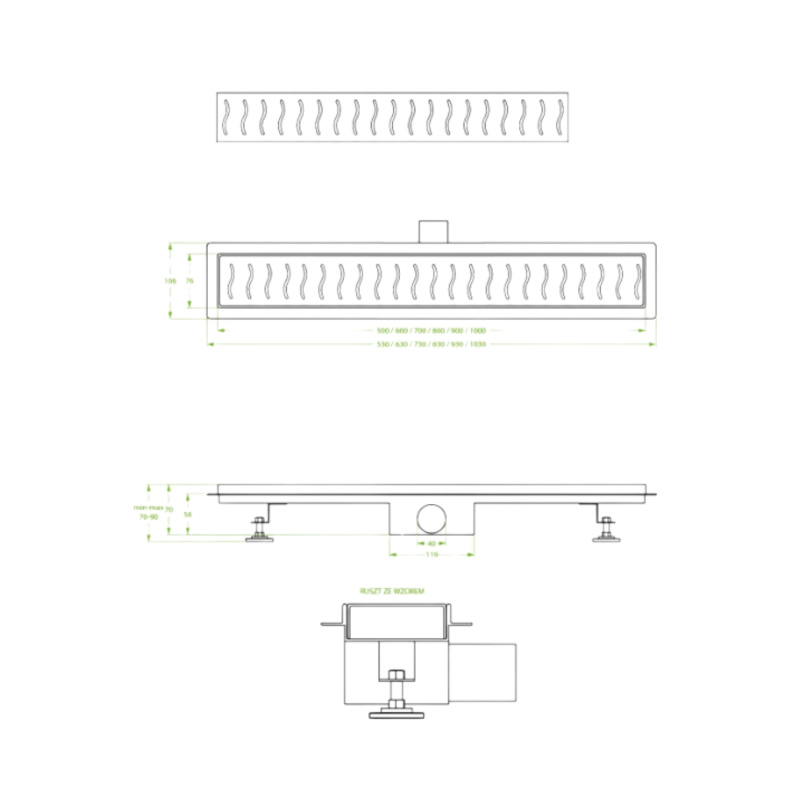 Laveo Ronda Odpływ liniowy 60 cm czarny COV_761D