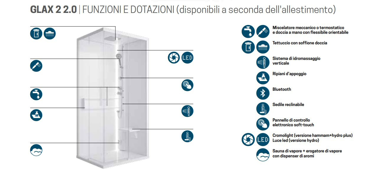 Zobacz wszystkie Kabiny z hydromasażem z serii Novellini Glax 2 A