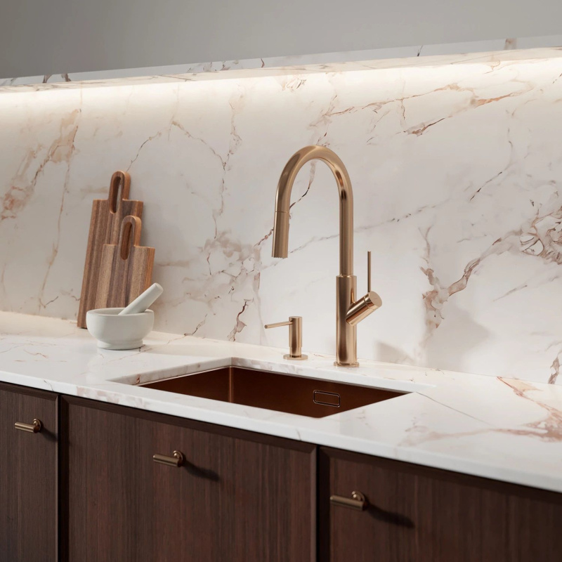 - Ułatwia utrzymanie porządku w strefie roboczej i pozwala zyskać więcej przestrzeni na co dzień, a możliwość montażu bezpośrednio w blacie, zlewozmywaku lub umywalce zapewnia pełną elastyczność aranżacji