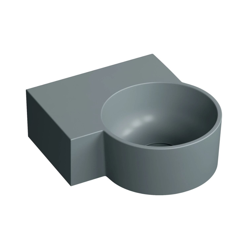 Opis produktu Omnires Ovo M+ Umywalka nablatowa lub wisząca 34,5x33,5 cm lewa ash grey mat OVO335UWLAG