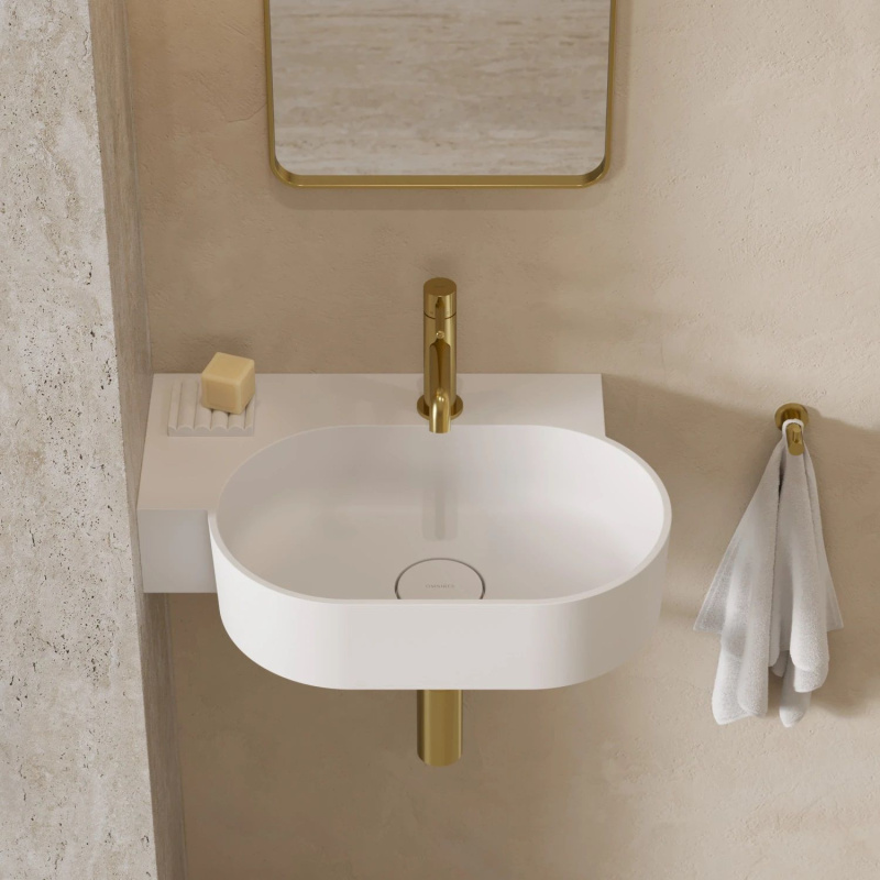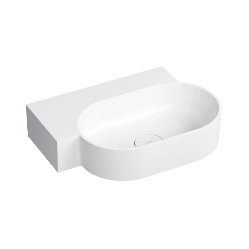 Opis produktu Omnires Ovo M+ Umywalka nablatowa lub wisząca 55,5x38,5 cm lewa biały mat OVO555UWLBM