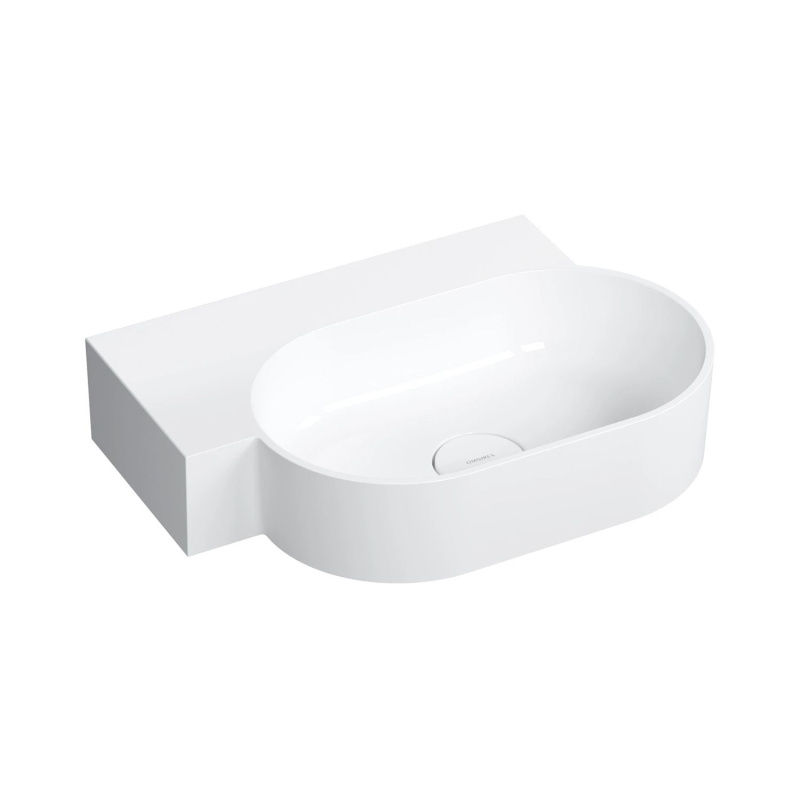 Opis produktu Omnires Ovo M+ Umywalka nablatowa lub wisząca 55,5x38,5 cm lewa biały OVO555UWLBP