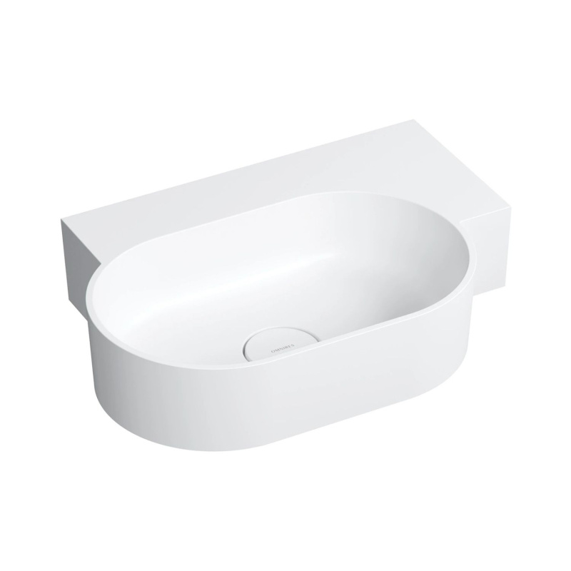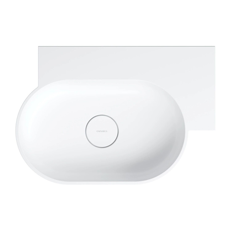 Opis produktu Omnires Ovo M+ Umywalka nablatowa lub wisząca 55,5x38,5 cm prawa biały mat OVO555UWPBM