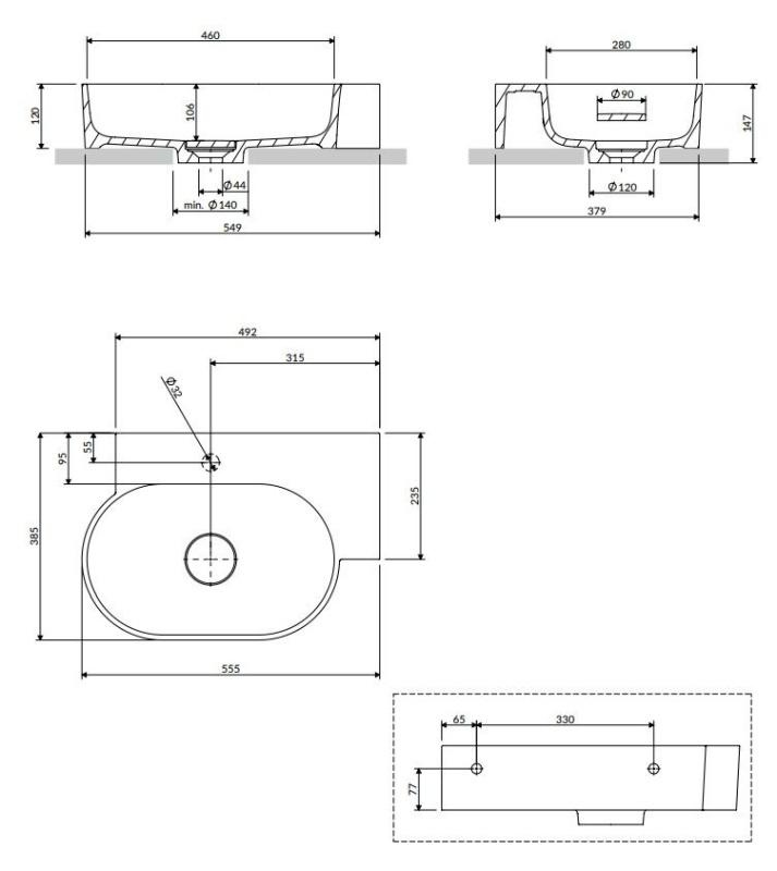 - W przypadku montażu nablatowego wymagane jest wycięcie okręgu w blacie o średnicy 140 mm